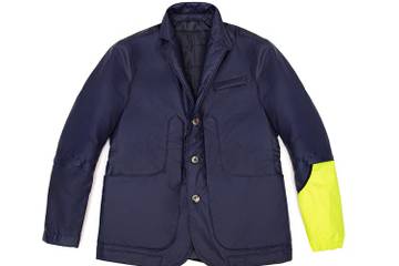 Sempre in tema di urban mobility, il marchio presenta la sua giacca iconica realizzata con tessuti tecnici come il Reflex della Tessitura Majocchi, un cotone stampa Camouflage floccato e un tessuto British millerain cerato. Innovativo l’uso del tessuto “reflex” da applicare ai polsi e sulla tasca del retro, per creare una sorta di segnale anti-pericolo durante gli spostamenti in bicicletta, trasformando il capo in Urban mobility jacket.