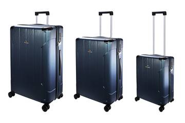 La collezione rigida si compone di tre trolley in altrettante dimensioni, compresa quella da cabina, realizzati nel resistente abs alleggerito. Hanno chiusura a zip e tsa a combinazione, quattro ruote scorrevoli che favoriscono comfort negli spostamenti; gli interni sono organizzati con divisori ed elastici ferma abiti. La scocca è proposta nella variante di design argento o nel classico blu navy.