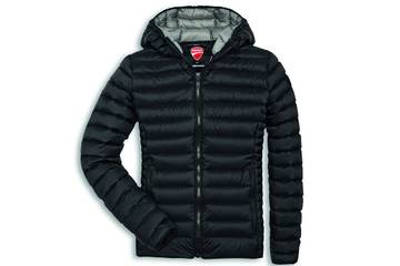 Protagonista della collezione il piumino d’eccellenza 800 Fill power. Per la collezione autunno da donna è stato selezionato un piumino classico con fit moderno, mentre per l’uomo un modello funzionale e versatile in ogni situazione. Per l’inverno è stato scelto un capospalla da uomo in tessuto softshell, che i dettagli color rosso Ducati rendono elegante e dinamico.