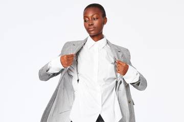 Tailleur e cappottini vedono esaltata la purezza dei loro colori dalle linee nette e da tessuti come cady e panno double.