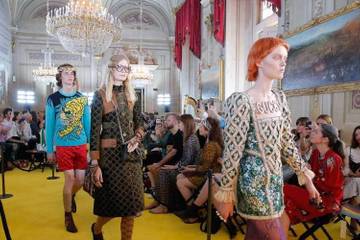 Si tratta della terza collezione cruise di Michele ed è stata presentata in una cornice incredibilmente bella quanto quella dell‘abbazia di Westminster dello scorso anno. In passerella modelle e modelli bianchi, neri e asiatici. Hanno sfilato in sette sale ricoperte da affreschi. Tra gli ospiti Jared Leto, Elton John, Beth Ditto, Kirsten Dunst e Dakota Johnson.