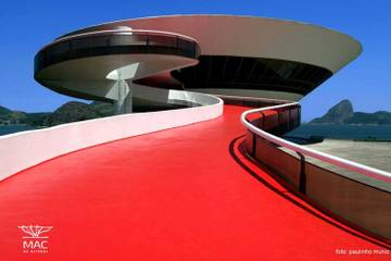 L’iconica costruzione, progettata a forma di un disco volante che sembra appena atterrato sul lato di una collina che domina sulla Guanabara Bay, di fronte a Rio, fu costruita nel 1991 e inaugurata nel 1996. La struttura bianca modernista si riflette nella piscina che circonda la sua base cilindrica, “come un fiore”, così venne descritta dall’architetto.