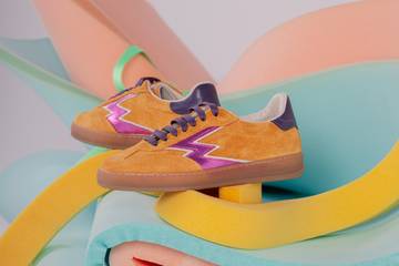 La collezione è realizzata in camoscio colorato secondo una palette originale che spazia dal rosa lampone al verde pavone, dal giallo mostarda fino alle versioni in pelle bianca e laminata. Il gioco di contrasti viene ulteriormente accentuato accostando la tomaia in camoscio alla brillantezza dei laminati e delle vernici a contrasto usate per il logo Master. Completa il design stile anni 70 della calzatura, la suola in gomma declinata in tre diverse nuances, trasparente, miele e burro, creando un gioco di contrasti colorful., ideale per chi ama outfit originali ed estrosi. Dettagli distintivi della collezione sono il pittogramma Master in pelle laminata a contrasto e l’applicazione sulla linguetta con lo speciale logo che celebra il decimo anniversario del brand.