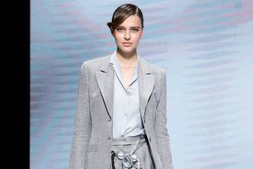 Giorgio Armani ha sfilato sabato sera, nell'ambito di Milano moda donna. Lo stilista, che ha deciso di sfilare a porte chiuse, trasmettendo la sfilata online e alla televisione, ha portato in passerella la collezione uomo e donna primavera/estate 2021.