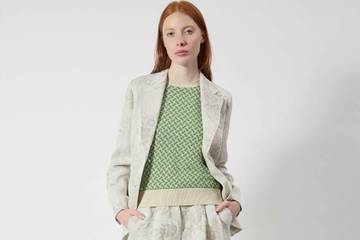 La collezione è realizzata in tessuti lavati, viscose fluide, lini finissimi, texture canvas. Linee pulite, asciutte, seppur rilassate e femminili per pantaloni palazzo dai grandi plissè, micro-polo abbinate a short di maglia, giacche doppiopetto interamente destrutturate, pensata nel jacquard floreale che si accostano a bermuda a doppia pince. Gonne plissè soleil si sdrammatizzano indossate con le canotte a righe dal gusto mariniere. Le tuniche in maglia si scolpiscono grazie a cinture da portare in vita.