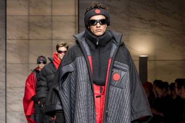 A chiudere la sfilata capi sportswear dedicati alla montagna e allo sci: tute, cappe e giubbotti imbottiti nei colori del rosso e del grigio.