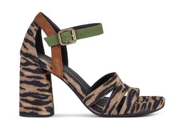 La collezione vira poi verso i toni caldi e naturali della savana, le fantasie animalier e le stampe etniche. Ecco dunque gli slingback incrociati sul davanti, con tacco alto e piccolo plateau a originale stampa legno; oppure con tacco più basso e cinturino alla caviglia; oppure ancora flat, con un incisivo décor di borchie metalliche lungo il profilo della suola. Il plateau è sagomato in forme morbide e arrotondate nei sandali a listini in pelle stampa serpente, che alternano toni metallici e naturali; oppure è in corda in quelli in pelle scamosciata animalier, che compare anche nelle espadrilles e negli originali modelli con nappine.