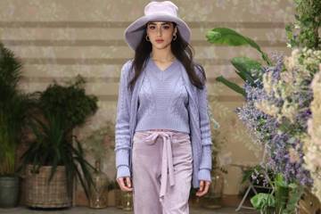 La palette cromatica gioca con tre colore principali: i rosa, che dai toni più polverosi e cipriati trascolorano nel lilla o nel tortora e raggiungono le profondità del rubino, del bordeaux e del melanzana, con tocchi di magenta; i verdi, dal muschio al salvia; i blu, intensi e quasi navy, sino ad arrivare al nero.