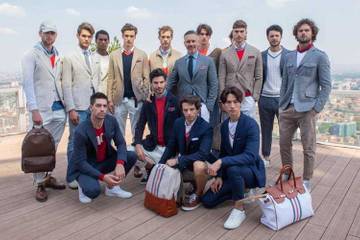 L'abito classico è da portare con una felpa oppure con un pullover colorato di matrice sportiva; le giacche doppio petto, in seta con bottoni in metallo, sono da indossare su t-shirt e denim vintage; i pantaloni jogger vengono abbinati a giacche costruite in tessuti italiani pregiati, ma resi Active da trattamenti antivento idrorepellenti, o da interni staccabili pensati per l’uomo che viaggia; e contaminano i capi basici con dettagli sport, le righe tennis anni ’60 e quelle verticali del baseball applicate a maglie, bomber, pantaloni.