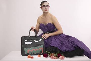 Jeffrey ha combinato la sua estetica anarchica e fatta a mano con la maestria della pelletteria di lusso. La creatura immaginata ha fattezze stravaganti, molti occhi simboleggianti i diversi desideri profondi che popolano l’interiorità umana, espressioni mostruose, bocche spalancate pronte a inghiottire, oppure a fare emergere, le passioni più nascoste.