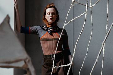 Il punto di partenza: alcuni dei suoi elementi preferiti, arricchiti da contrasti accesi, inaspettati e da texture vistose. Righe, fiori e check sono abbinati a effetti patchwork oppure associati in piacevoli e ricche stratificazioni. Un poncho-coperta si appoggia su un abito fluido, i pantaloni dalle proporzioni maxi si indossano con una maglia aderente, una mantella oversize è perfetta sopra qualsiasi capo.