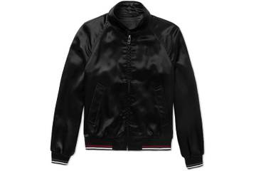 Il prezzo del giubbotto nero (nella foto) è di 1550 euro, la maglietta a righe costa 450 euro. Nella collezione anche occhiali e calzature.
