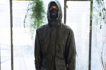 I capi vanno dalle versioni reinterpretate ultraleggere e performanti del giubbotto Urban protection metropolis, presentato per la prima volta vent’anni fa nel 1999, ai giubbotti “crystal” realizzati in nylon tinto a profilo piatto con dettagli strutturali visibili, ai piumini. La tavolozza è nei toni dei colori pastello industriali sbiaditi.
