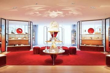 Situato al quarto piano, lo spazio di 28 metri quadrati rende omaggio alla prima boutique di Christian Louboutin, i cui archi bordati di ottone hanno ispirato la forma degli specchi dell'angolo. Delimitato da quattro pareti di vetro fumé, nello spazio è onnipresente il colore simbolo della casa: il rosso. Le collezioni di scarpe da donna sono esposte insieme a una selezione di articoli in pelle. Lo spazio che si unisce ai 160 negozi Christian Louboutin nel mondo.