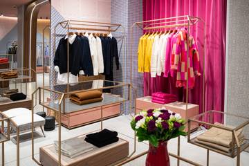 Intanto, il nuovo negozio, che ospita la collezione donna e uomo ed è un inno all'iconico motivo biscottino del brand, così come fu definito da Gianni Agnelli, storico cliente del marchio, è un tripudio di colore, dall'arancione delle tende in velluto dei camerini, alle poltrone rivestite in tessuto Drumohr. Alle pareti la carta da parati con le stampe dell'iconico biscottino, ossia il pattern Razor Blade, intervallate da un goloso rosa e dal bianco. "Abbiamo deciso di assecondare il Dna del marchio che è un costante richiamo al colore", ha spiegato Ciocca, aggiungendo che il team stilistico e l'architetto si sono ispirati anche al grande fotografo Martin Parr che, attraverso le sue opere, ha saputo raccontare il mondo con uno sguardo ironico.