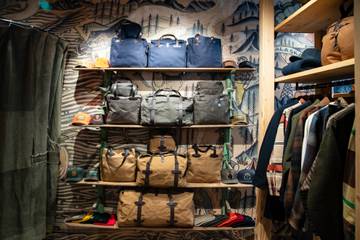 Nello store sono presenti le classiche Mackinaw cruise jacket in check rosso e nero e le Vintage flannel work shirt in tutti i colori dell’autunno, oltre al Mackinaw wool double coat, caldo come un parka ma tecnico come un capo da sci.