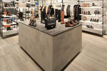 Entrambi gli store, collocati all’interno di centri commerciali, si presentano come una vetrina completa del brand, proponendo tutte le collezioni adulto e bambino. Layout classico, gli store hanno una superficie di circa 85 metri quadrati che si estende su un solo piano con vetrine arricchite da strutture lightbox e pavimentazione in gres effetto legno. Il bicromatismo bianco e nero delle strutture espositive si alterna a pareti dalle superfici lisce per le aree dedicate all’uomo a carta da parati con una trama che richiama elementi grafici del brand per l’area donna.