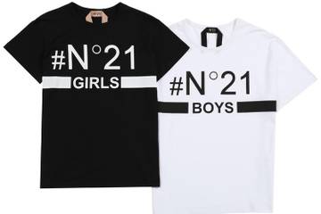 Disegnate da Alessandro Dell’Acqua, le magliette hanno il logo della maison preceduto dal simbolo dell’hashtag, per sottolineare l’importanza e l’attenzione che N°21 dedica al mondo dei social, ed è identificato dalla scritta Girls o Boys con l’intento di avvicinare sempre più il brand ai suoi follower.