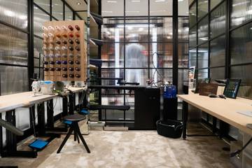 L'atmosfera è quella di uno spazio multi-materico, caratterizzato da elementi in noce Canaletto, marmo Patagonia, marmo Levanto, marmo verde, ottoni e paglia di Vienna. Il piano terra accoglie i clienti con l'area commerciale, mentre il piano interrato è dedicato all’esposizione di prodotti di diverse merceologie e alla sartoria manuale, novità pensata per offrire un'esperienza di shopping ancora più personalizzata.