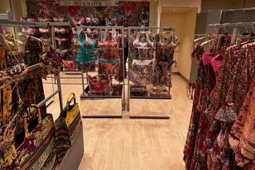 La boutique si trova all’interno del mall Barra shopping, in un ambiente su due livelli caratterizzato da un’immagine in linea con quella dei negozi brasiliani. Uno spazio che restituisce l’idea di un salotto con le sue poltroncine a conchiglia in velluto verde muschio, le coffee table in marmo e oro e il maxi lampadario in oro e cristalli, dominato dall’argento metallizzato in dialogo con le superfici a specchio degli arredi. All’interno si trovano le collezioni del marchio, nate dalla creatività di Alessandra e Francesca Piacentini, in cui al beachwear e ai fuoriacqua si aggiunge la proposta di abiti in texture speciali, di produzione italiana.