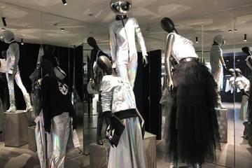 Un’installazione artistica dedicata alla collezione autunno inverno 2017-18 ha segnato il ritorno dell'etichetta nel cuore di Milano. Il concept si sviluppa partendo da un modulo quadrato perfetto, che viene poi scomposto e destrutturato, che si moltiplica all'infinito grazie alla sua superficie specchiata, diamantata, estrusa. Il bianco e il nero sono i colori predominanti che fanno da base alle collezioni del marchio. Superfici lucide, di vetro come di tessuto, rivestono le pareti.