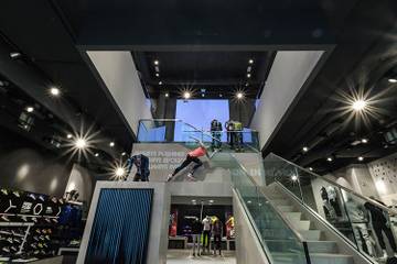 Con una estensione di oltre 700 metri quadrati, il negozio è disposto su due piani e dominato da una imponente architettura interna e una scala centrale progettata dal team di retail design di New Balance.
