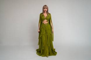 Alberta Ferretti collabora con Madame Tussauds nell'ambito di un tributo globale a Taylor Swift, The Eras Tour. Alberta Ferretti ha vestito una delle 13 statue di cera di Taylor Swift appena svelate con un look personalizzato ispirato al Taylor Swift, The Eras Tour, un abito in chiffon verde con maniche a tromba, scollatura profonda, dettagli in...